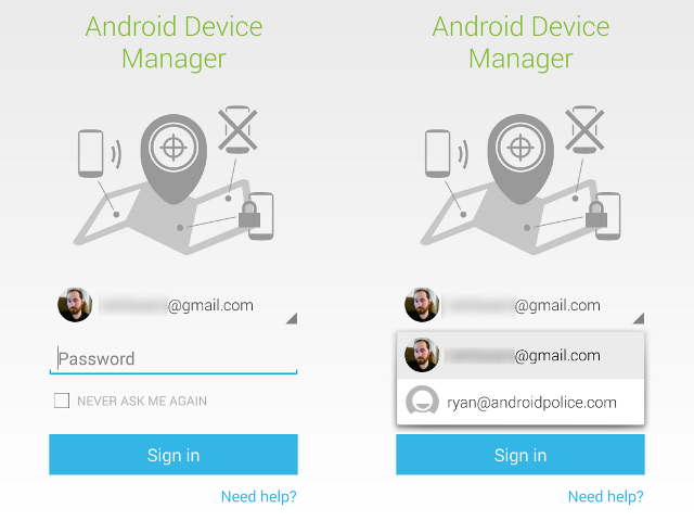 Cependant, avant la nouvelle mise à jour, il était possible de se connecter à son compte ADM, de cocher la case « Never ask me again » pour ne plus avoir à le rentrer à chaque fois, ou par peur de l'oublier. C'est alors que l'application devient dangereuse pour nous même. En effet, un voleur qui tombe sur notre terminal avec adresse mail et mot de passe enregistré peut se connecter à notre compte, et faire ce qu'il veut de nos autres terminaux. C'est le coup de l'arroseur arrosé.